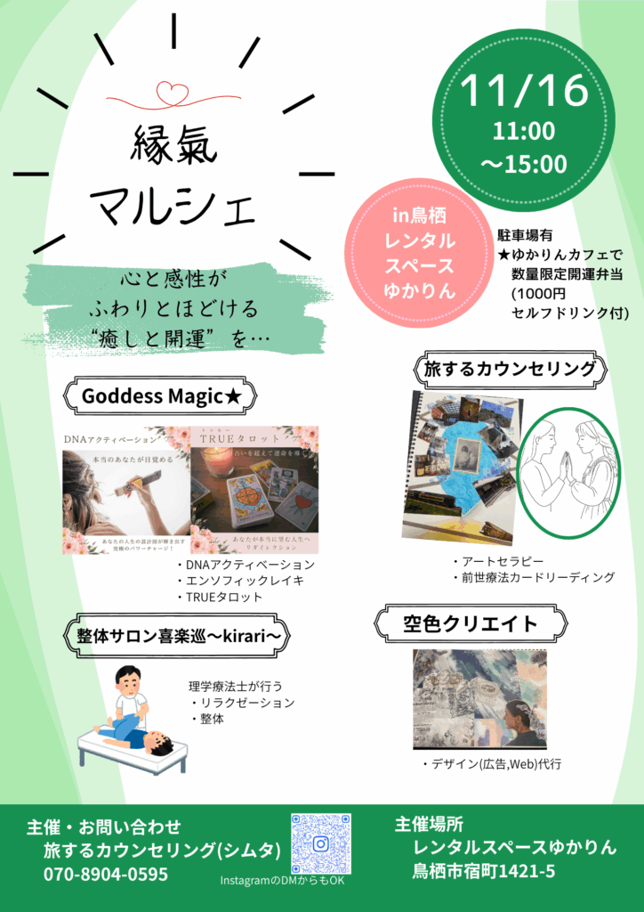 11月16日(日)に鳥栖のレンタルスペースゆかりんにて「縁氣マルシェ」を開催します。